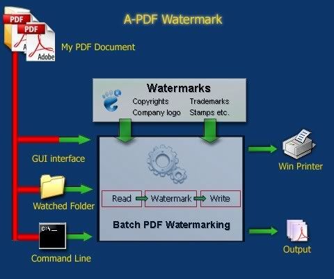 A-PDF Watermark is a fast desktop utility program that lets you batch add image and text watermarks to Acrobat PDF documents. You can create watermarks with file names, company logos, signatures and product pictures, etc. Another convenient features are print directly and hot directory monitor.